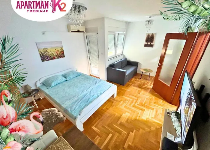 Apartman K2 Lägenhet lägenhet erbjuder ett komplett kök samt rum med balkong, soffa och satellit-TV. Bazen Bregovi Public Beach ligger 2 km från boendet, medan Arslanagic-bron ligger 1 km bort.